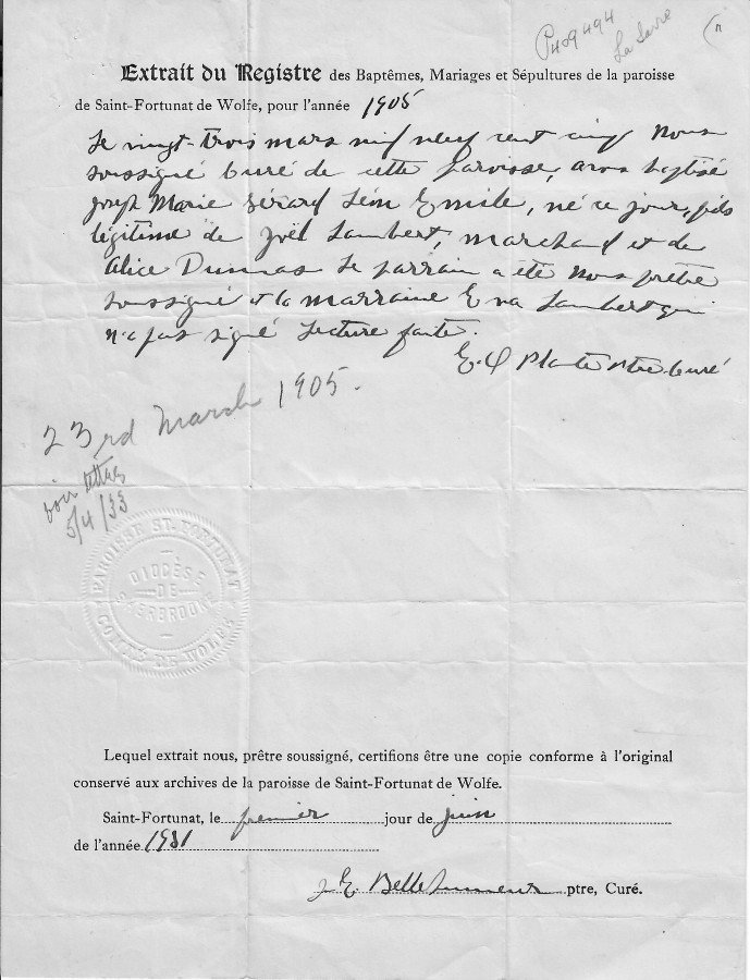Dimensions: 689x900 pixels  (0.62 Méga pixels total) Taille: 133KB 300dpi 24 bpp, fichier source: ..\..\Users\Lucien\Pictures\GenoPro\Documents GENOPRO\Famille Lucien Vallée\Jessica Lambert\LambertGérardExtraitNaissance.jpg