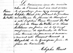 L'information citée provient deun manuscrit publié par Paroisse Notre-Dame de Québecà Beauport, Qcle 3 octobre 1674, conservé à Paroisse Notre-Dame de Québec. (Réf: p. 9). L'auteur/concepteur était Alphé Perret, ptre. Cette citation est considérée comme étant une évidence directe, formelle et non-discutable.
