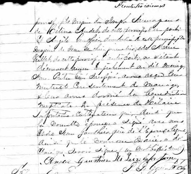 L'information citée provient deun manuscrit publié par Paroisse Saint-Stanislas, co. Champlain, Qcà Saint-Stanislas, co. Champlain, Qcle 25 novembre 1873, conservé à Paroisse Saint-Stanislas, co. Champlain, Qc. (Réf: 1873 M. 10). L'auteur/concepteur était J. P. Gouin, ptre. Cette citation est considérée comme étant une évidence directe, formelle et non-discutable.